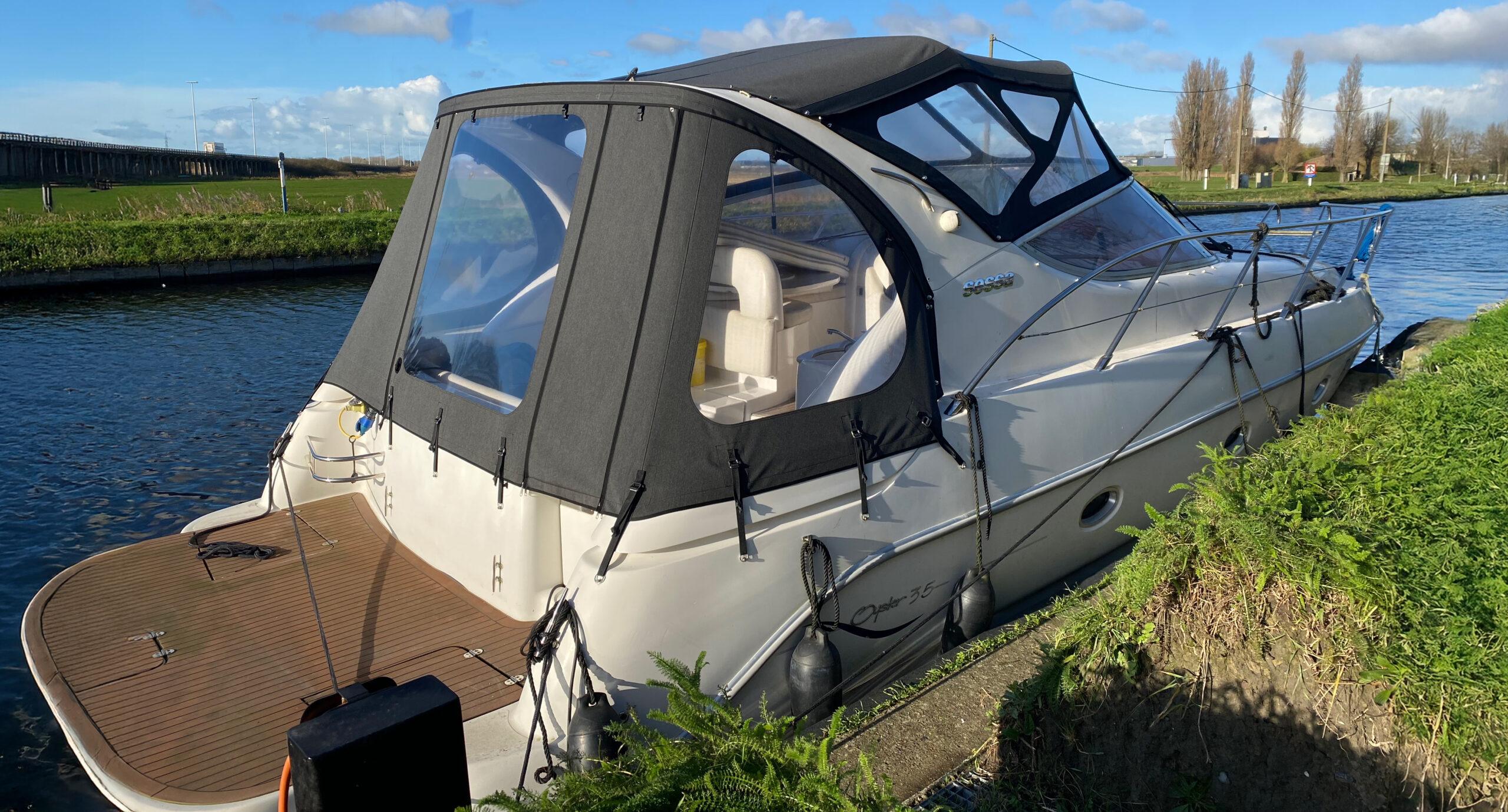 Uw motorboot veilig aangemeerd op onze eigen aanlegplaats, terwijl wij zorgen voor uw kap.